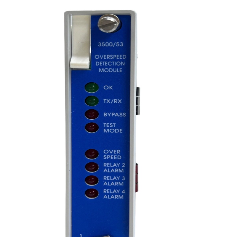 The 3500/53 module is specifically engineered for overspeed protection in critical rotating equipment. Its primary function is to continuously monitor rotational speed in real time. When the machine speed exceeds a predefined threshold—typically the safe operating limit—the module triggers an alarm or initiates a protective shutdown to prevent mechanical damage or safety incidents.