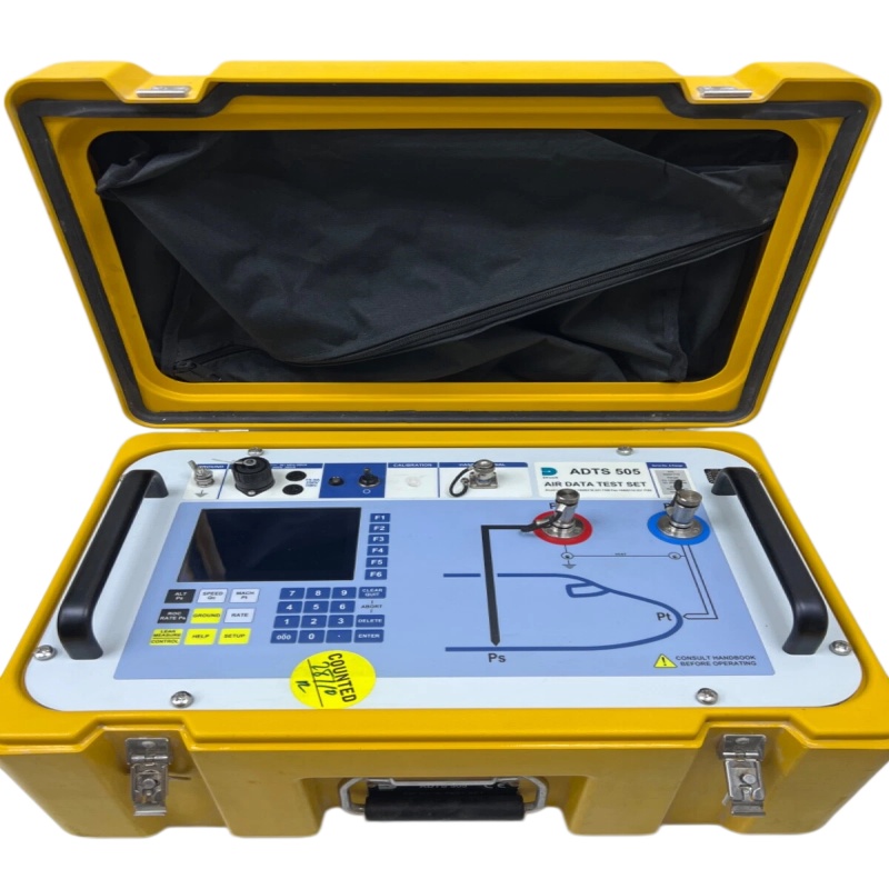 The GE ADTS 505 Air Data Test Set is a high-precision test instrument designed for avionics systems. It is primarily used to simulate and verify critical air data parameters—such as airspeed, static pressure, and total pressure—during ground or hangar operations.